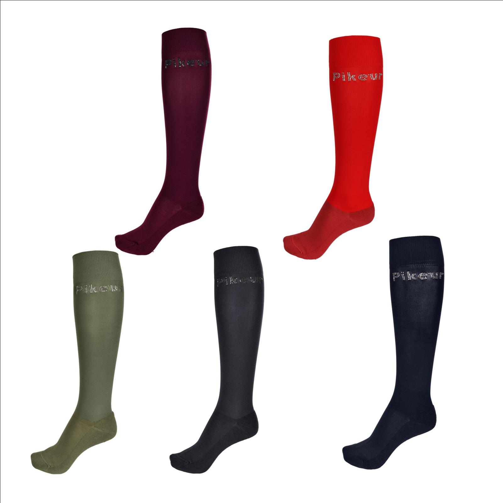 Pikeur Strümpfe RHINESTONES Kniestrumpf mit PIKEUR in Rhinestuds unterhalb des Saumes . Die Socken bestehen aus sehr weichem Baumwollmaterial und sind sehr angenehm zu tragen. Material: 53%Polyamid 45%Baumwolle 2%Elasthan