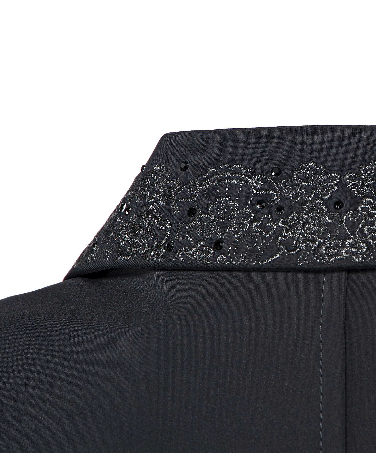 Lurexstickerei und schwarzer Strass am Kragen