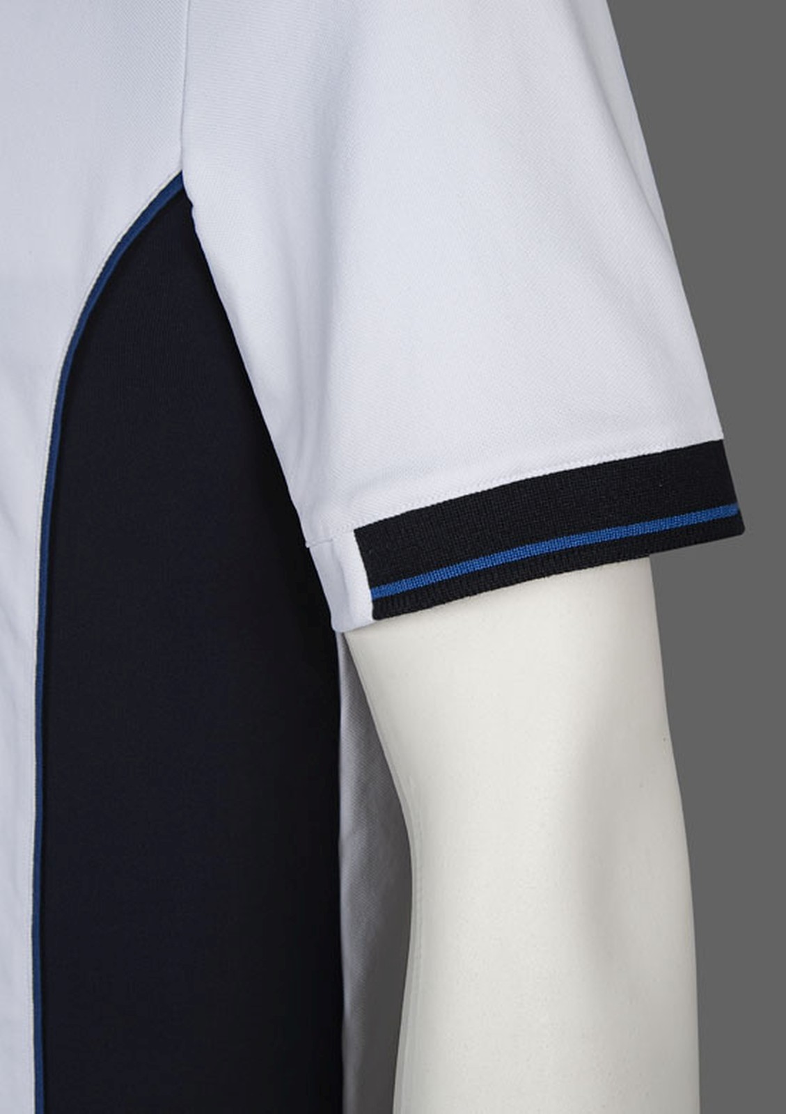 Farbeinsätze am Ärmelabschluss und an der Taille