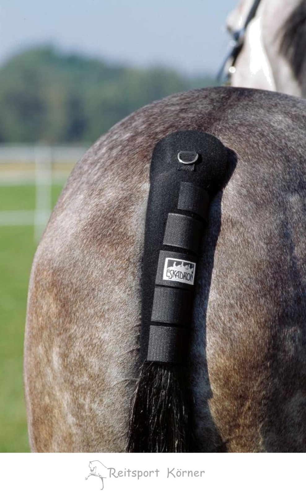 made of 5.5 mm thick Neoprene with fleece lining to protect the horse`s dock during transport or to keep the tail firmly bound. The underside consists of unlined neoprene which means the tail-guard remains firmly in place.