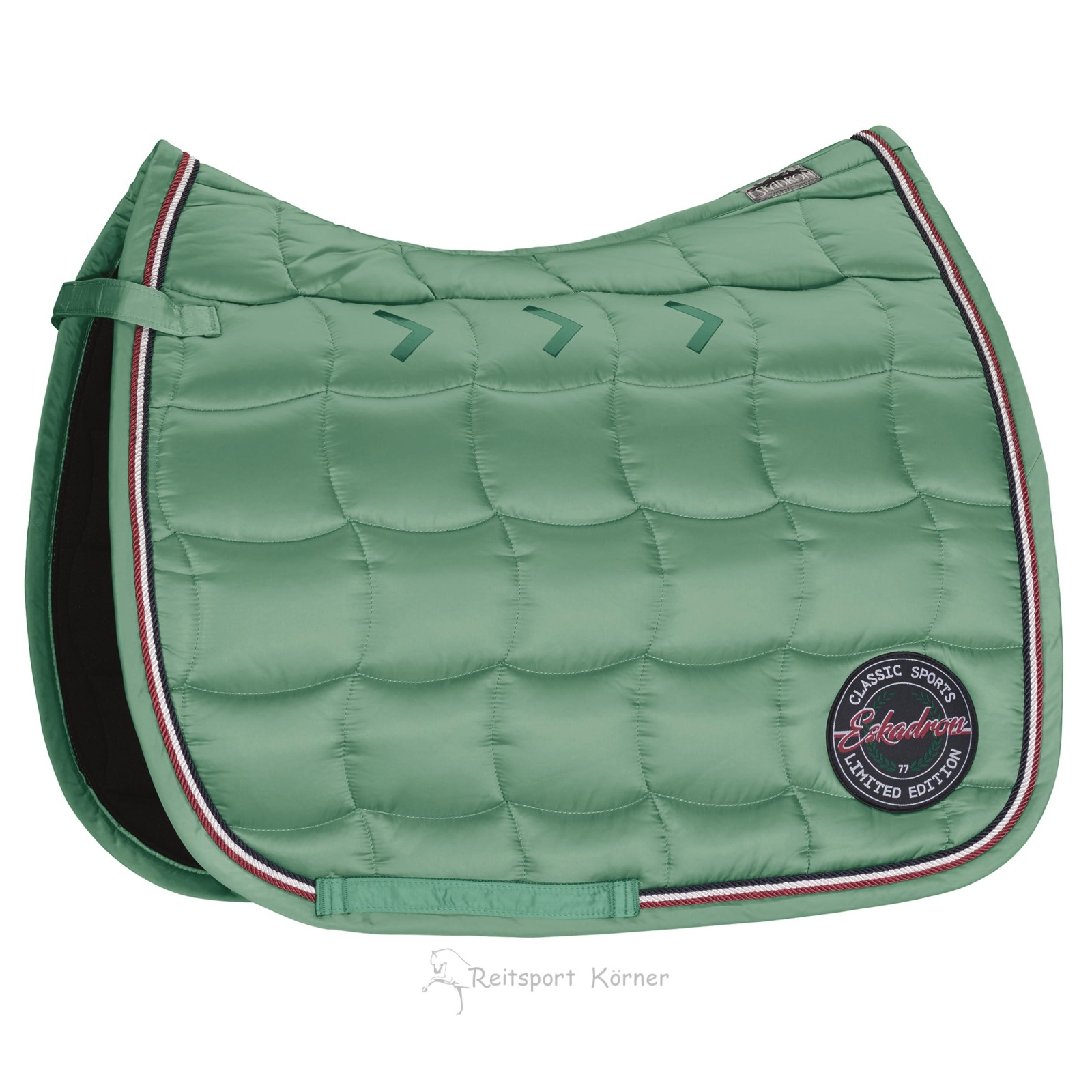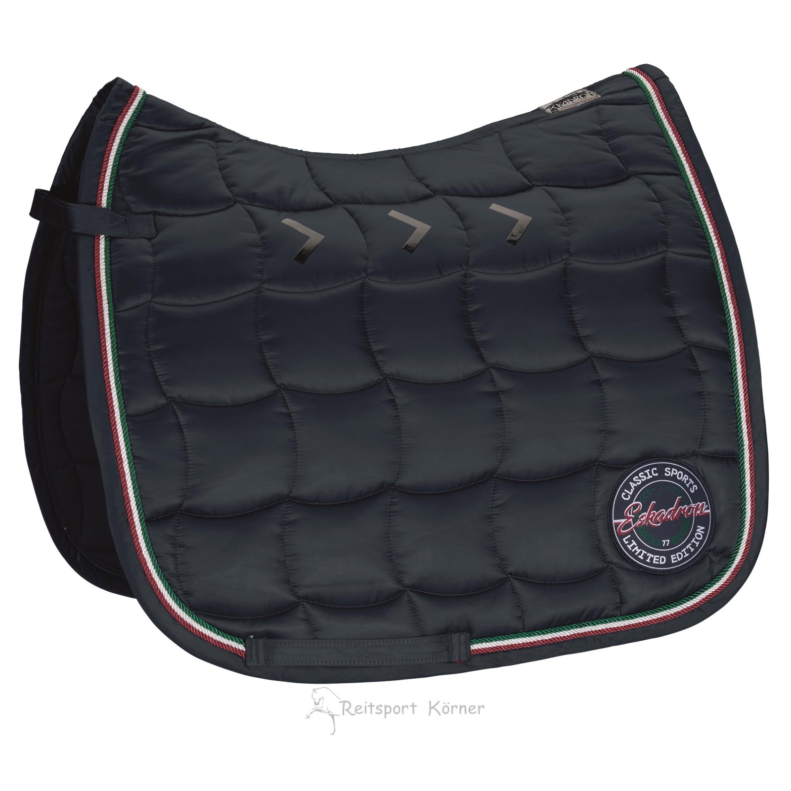 Eskadron Classic Sports Voluminöse Sattelunterlage mit sportilicher oder eleganter Steppung. Hochwertiges Glossy Obergewebe mit einzigartiger Matt-Glanz Oberfläche. Schick und strapazierzähig! Linksseitg mit Kollektionsemblem ! Limited Edition !!!