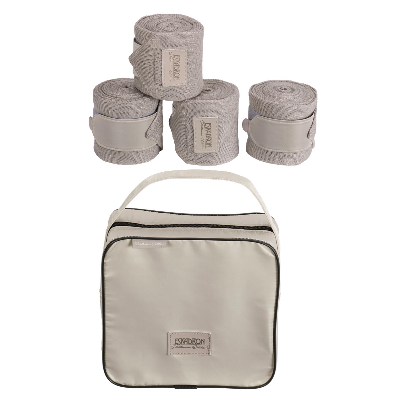 Eskadron Platinum Bandagen ACRYLIC LUREX strapazierfähiges Polyester-Material mit Lurex-Effekt Platinum Emblem ton-in-ton hochwertige Taschenverpackung inkl. 4 Bandagen Größe: Die Maße für Warmblut sind 3,5 m Länge x 12cm Breite Limited Edition !
